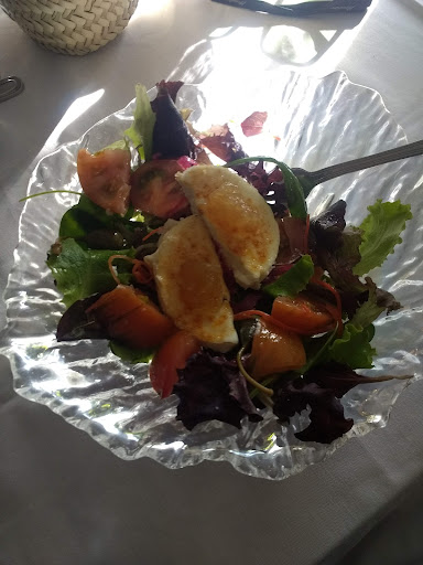 Los huevos con jamón un desastre, el jamón estaba seco a más no poder, sin nada de veta, sin nada de tocino, no era ni siquiera Serrano, estaba más salado que chupar del bote de la sal directamente y para colmo estaba como si lo hubieran metido en el microondas (doblado hacia arriba) lo cual hacia que estuviera más seco todavía, totalmente incomible (de hecho se ha quedado en el plato). Los huevos con puntillas, bien hechos, pero servidos fríos, las patatas fritas medio frías, no parecía que estuvieran recién hechas, quizá tardaron mucho en sacarlas pero desde luego estaban frías y eso que las patatas conservan mucho el calor. Y el pisto era tan minúsculo que era menos de un bocado, para eso quizás mejor ni poner. La ensalada de queso de cabra lo mejor, realmente deliciosa.