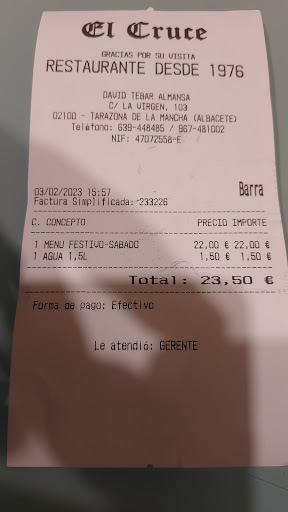 Read moreNos lo recomendó el dependiente de una tienda de ropa cercana,a la que entramos por casualidad,y muy buena elección para ir a menú,En festivo el menú 25€,al principio nos pareció algo elevado,pero de allí sales sin hambre,así que,el precio a corde,y todo buenísimo.De primeros pedimos arroz con secreto y canelones de foie y pollo,de segundos,codillo,chuletas de cordero y hamburguesa de pollo completa,de postres, tarta tres chocolates,arroz con leche y pan de calatrava(todos casero),pan(buenísimo),café e infusiones,y bebida. La atención estupenda,y rápida.El local y el baño bastante limpio.Totalmente...