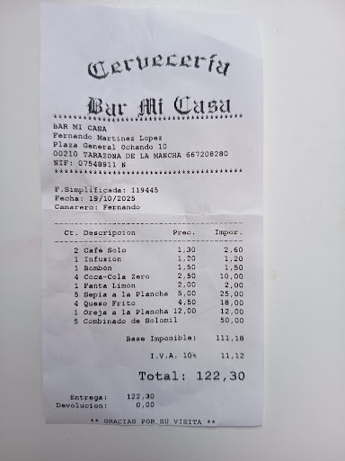 Hoy hemos estado comiendo allí 5 personas,y nos han puesto un plato tipo postre de queso frito 18€, otro de igual tamaño de sepia 25€,otro de oreja plancha igual que los anteriores 15€, solomillo con patatas alargadas congeladas con 5 huevos 50€ 6 refrescos y 4 cafés Total 122 € Le hemos protestado y se ha puesto de malas formas Le he pedido carta de precios y se ha echo el desentendido Pero es que antes de llegar yo está mañana,3 de mis compañeros y se han tomado una Cocacola una cerveza y un martini y les ha clavado 9€ Si no queréis ser estafados os recomiendo que no paséis ni...