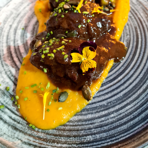 El abanico ibérico fue simplemente espectacular. Jugoso, tierno y perfectamente cocinado, con ese punto de brasa que realza aún más el sabor de una carne de primera. Cada bocado era una explosión de intensidad y textura, acompañado por guarniciones que no le restaban protagonismo, sino que lo realzaban aún más.