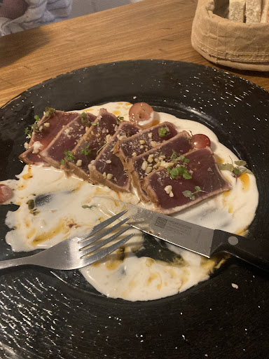 Read moreBurger was a massive bunn with a bland meatball inside covering 1/3 of the bread. Patatas bravas, a pride of the restaurant it seems, were tasty but It was just 8 potato balls in sauce, nothing special, especially for 12€. There could be a bit more wine in the glass. Until the thickest point of it maybe. Tuna dishes and croquettes were adequate, not to die for. We weren't alone in the restaurant so I can excuse a bit slower service, but as everyone got their food at different times it felt far away from the high end place they want to appear as. After everyone but one had already finished we cancelled the order for the last dish, that we've been waiting for quite a long time, as the person waiting for it lost their appetite. In the end we had to wait again to pay and after one part paid their share the rest was abandoned and eventually decided to chase the staff and walk inside to pay. The cancelled plate was still counted on the bill and the amount reset forgetting about the first part being already paid, but we managed to fix that. Good we spoke Spanish as English is not...