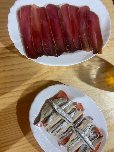 Read moreLa Comida estaba bastante buena , atún croquetas de choco , lomo , por equivocación nos pusieron presa y nosotros la Confundimos con el lomo , teníamos dudas d elo que era pero ya le habíamos metido mano, ala Presa ( por cierto bastante buena ) antes de que el Camarero nos dijera que se habían confundido y nos lo habían puesto a nosotros y que nos la iba a cobrar ya que llevábamos medio plato cuando nos dijeron la equivocación ( también comprensible que nos la cobren ) le pedimos unos chupitos de pacharán o cualquier dijestivo para bajar la comida además que teníamos pensado irnos de copas por la zona , y no tenían nada un poco raro desde luego ni café ni ningún tipo de digestivo .... pacharán , whiski etc , la verdad es que nos fuimos con un...
