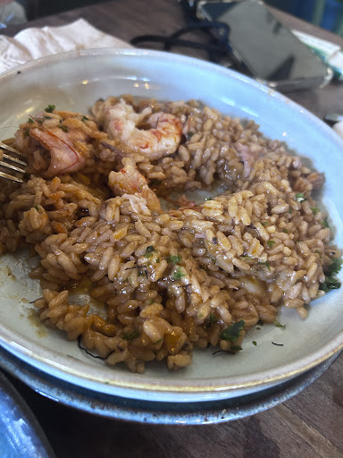 They have never heard of etiquette: They throw the plates and glasses randomly on the table. - They serve food plate to your hand.- They forget your order even though not many people there.- They keep one plate for all courses. Dessert is brought to the table before any meat dishes are taken away (not a big fan of ice cream when a big bone of meat is under my nose). Paella was SUPER SALTY! The tasty things in the dish were asparagus and scallops.