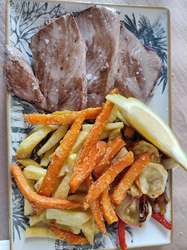 Read moreTrès bon restaurant rapport qualité-prix. Très discret,se trouvant à l'opposé du port, terminus du quai, loin des restaurants à touriste. Très bon accueil, à table vu sur le château fort , le port et la ville. Nous dégustons 3 petites entrées, ( 1) 3 boulettes de viande à la sauce tomate, 2) une petite assiette de mélange de poisson,pomme de terre et mayonnaise, 3) une petite assiette de poulet au curry. Puis mangeons 3 savoureux morceaux de thon mi cuit mi cru, (un délice) accompagné de deux sortes de frites, pomme de terre et patate douce, et des légumes. Dessert : un café et une glace. Boissons : 2 canette de fanta orange et une grande bière. Le...