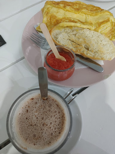 This place has a covered outside seating area where everyone was drinking a coffee or some other drink, so I sat there on the first visit. A cortado costs just 1.10 Euros, which is very reasonable.