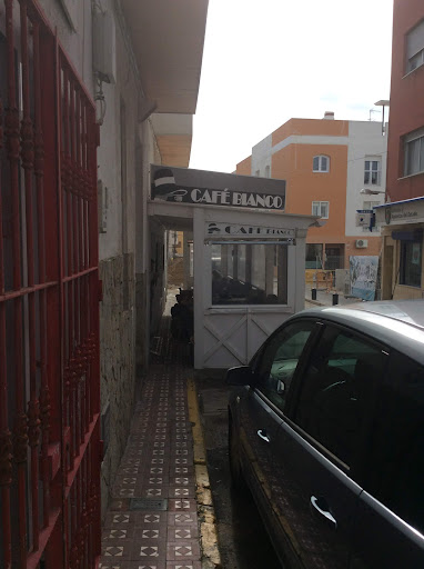 On a four-day stay in Tarifa, Spain, in early March 2018, I discovered the Café Bianco while walking back to my hotel after shopping at a nearby supermarket in the new part of town. It is located on a side street off the main road and is clearly visible if you look for it.