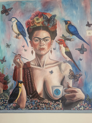 Lo que realmente me robó el corazón fueron las pinturas dentro del local, especialmente la impresionante obra de Frida Kahlo. Esta pieza, creada por talentosos artistas locales, no solo es un homenaje a una icónica figura del arte, sino también una celebración de la creatividad y el espíritu de la comunidad de Tarifa. Es maravilloso ver cómo "Color Café" apoya y exhibe el talento local, enriqueciendo la experiencia de todos los que visitan.