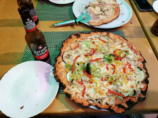 Debieron devolver la pizza, sí, con su pimiento crudo y su cebolla cruda, carne que soñó con ver el fuego, y un par de ingredientes que no venían en la carta. La masa estaba bien, y el pan de ajo también.
