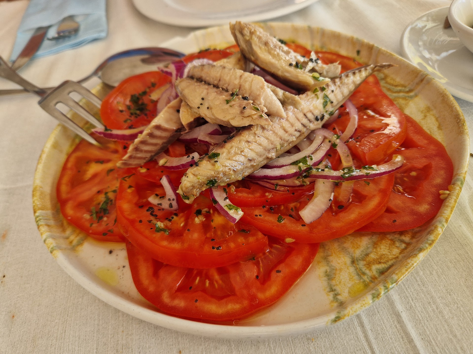 Read moreThe food was really tasty and good, but I'm not giving them a 5 stars... because we arrived and then 10 minutes later our family also came to eat. They were very unfriendly and not flexible. We asked them for 2 more chairs and they didn't give us an answer, like they didn't even hear us.. We managed to get them by ourselves and 20min later one of the waiters came with the chairs. His reaction, when he saw that we already had them, was to throw them on the floor. He was really stressed out and a little bit angry... We ordered the red tuna and sword fish, very well cooked. The cherry on top at the end was that we parked behind the restaurant, after eating we went for maybe half an hour to the beach and when we returned to the car we got a parking ticket. There was nothing indicating that it was forbidden to park there and the staff...