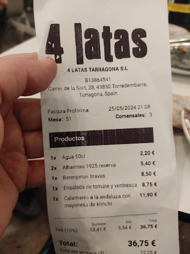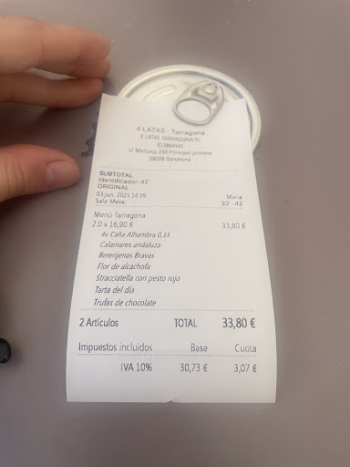 Final Verdict If you're considering 4 Latas, visit for the location and atmosphere rather than the service or food quality. The spot excels at providing a great vantage point for enjoying the evening scene, but falls short on culinary execution and attentive service. Given our recent experience at their Barcelona location, this Tarragona branch appears to lack the consistency and value that one would expect from a...