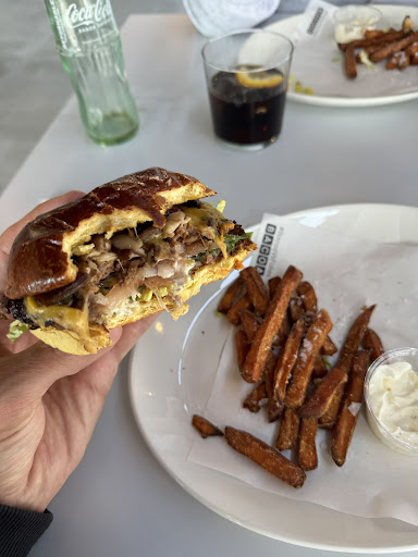 PROS: -Las cantidades eran correctas, sin postre nos hemos quedado bien -Tienen agua Solan de Cabras a 1.50, y eso no se encuentra en cualquier lugar -El sitio es muy bonito y es luminoso (fuimos de noche), pero llevan poco abiertos y a ver si aguantan el nivel estético y la higiene -Tienen un espíritu ecoligista muy positivo aunque incongruente que comentaré en los contras -Tienen un surtido interesante de cervezas -La calidad de las hamburguesas era correcto, un 7/10. Del acompañamiento y extras hablaré más adelante -El servicio es muy amable y correcto, y han sido relativamente rápidos en preparar ambas hamburguesas -Las sillas tienen compartimentos para dejar tus pertenencias, algo bastante útil y muy chulo