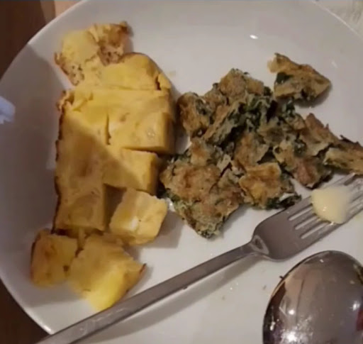 Nosotros escogimos el menú: pasta a la carbonara, bistec a la plancha, sepia y de postre Pudding.