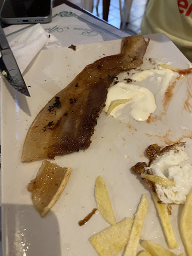 Con los segundos ya ha sido un poco más lío… parece que aunque la camarera había apuntado con todo detalle el pedido, en cocina han modificado un poco la anotación. La sepia estaba muy bien pero el bistec pese a solicitarlo poco hecho estaba al punto. Las patatas pese a que se anotó que fueran fritas, el plato venía con panaderas. Venía además con setas, que estaban genial.