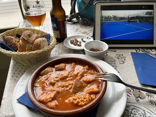 I just had a paella and a mug of beer there. I paid€10, which was much more than I expected. The paella consisted of rice, green pea, pieces of red pepper? , and two very small bones, about 1 inch/ 2.5 cm long with little meat attached to them. No sea food present there at all. It was the smallest, worst and most expensive paella ever! I bet it came from a can and the cook added the two bones. No salt, pepper, etc. offered either. You can buy a larger, better, and less expensive one in the Mercadona store by Tarragona. The waitress/ bartender was very rough, no customer service skills or effort to be a bit welcoming at all. Stay away and spend your money at...