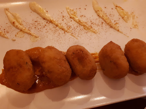 La patata nos ha sorprendido, ha sido diferente a cualquier otra, no en un sentido positivo. Son unas patatas con un toque muy asiático, fritas de tal manera que crean una capa de fritura separada de la patata interior, que se infla e incluso se deja pellizcar y al morder se mantiene uniforme y no se rompe como cualquier otro frito. Por desgracia y a pesar de irnos contentos al haber encontrado otras bravas que intentan algo diferente, no podemos decir que nos hayan gustado, creemos que este tipo de preparación no calza con unas patatas bravas.