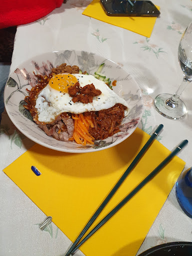 Como gran aficionada y conocedora de la cocina coreana, y visitante recurrente de restaurantes coreanos, siento decir que este es el peor restaurante “no coreano” que he probado. Digo no coreano porqué te lo venden como auténtico, pero realmente son chinos. No tengo nada en contra de que sean chinos, pero me parece fuerte que en instagram se hagan llamar restaurante auténtico coreano, y que la camarera lleve un hanbok (vestido tradicional coreano) cuando ni siquiera te saben hablar en coreano, ni escribir bien los platos coreanos en la carta, ni cocinar comida coreana. Creo que no hace falta engañar a la gente haciéndose pasar por coreanos, lástima que a mi no me engañaron. El bibimbap (o bingbingbang según ellos) que me comí, tenia un fuerte sabor a lo que parecía algún producto de limpieza o insecticida. No me lo pude terminar. A esto se le suma que tan solo llegar al restaurante, todo estaba lleno de pequeñas moscas de fregadero, tantas que nos cayeron varias a la bebida y hasta me tragué una, con lo cuál no comimos nada a gusto. Eso sí, la tempura de gambas estaba riquísima, pero no es algo que haga subir la puntuación a mi valoración. El ambiente era extraño, la entrada estaba completamente a oscuras, el local es anticuado y poco atractivo, y comimos completamente solos siendo un sábado al mediodía, con lo cuál ya te puedes hacer una idea de como les va el negocio…