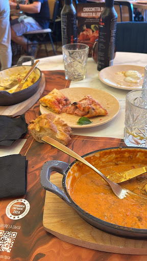 Fuimos mi pareja y yo a cenar para probar este restaurante nuevo en Las Gavarres ya que nos gustan mucho los restaurantes italianos. Nos atendieron muy rápido y nos dieron una mesa. El local es original y muy bien iluminado. Vinieron a pedirnos las bebidas mientras decidíamos qué comer y ya me sorprendió que al pedir un agua con gas no trajeran la típica Vichy, sinó una Magma de Cabreiroá, botella metálica oscura y de las pocas con gas natural, no añadido. Mramos las pizzas y nos parecieron originales algunos sabores y decidimos probar una con torrezno de Soria. Nos trajeron un pequeño aperitivo para picar que eran como unos picatostes para mojar con una salsa pesto muy buena. Después de haber probado muchos restaurantes italianos por Barcelona y Tarragona nos esperábamos que fuera uno más y la verdad es que no. Nos sorprendieron mucho el sabor de las pizzas, la de torrezno con un huevo poché y un toque de pimienta con queso estaba muy buena, y la de tomate con un embutido que ahora no recuerdo, nos sorprendió mucho el gusto de tomate auténtico. Muy sabrosas. Quisimos acabar probando postres y pedimos un tiramisú de pistacho y una tarta de queso (que también están muy de moda y hemos probado muchas). El tiramisú espectacular y la tarta de queso nos sorprendió mucho tanto por su sabor (que estaba a la altura de algunas que hemos probado consideradas de las mejores de Barcelona) y la ración era muy generosa. El precio nos pareció muy correcto por cantidad y calidad nada caro. Y el servicio nos trató muy bien, amable, rápido y educado, sobretdodo la camarera que nos atendió, muy simpática. Sin duda...