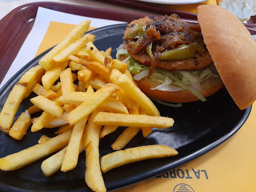 Read moreEl local está dejadísimo. No está limpio, hay restos de comida hasta en las sillas, los botes de salsa están pegajosos y el lavabo es como una sala del pasaje del terror. Supongo que es difícil mantenerlo en condiciones porque está en funcionamiento de manera continuada y la gente que trabaja aquí (que no para) no puede con todo... El menú no está mal para la batalla, aunque tampoco es tan económico como puede parecer si se tiene en cuenta la relación entre calidad y precio, pero se puede comer a cualquier hora porque la cocina está en marcha desde la apertura hasta el cierre. Se agradece que hayan incluido algún plato vegano (hamburguesas) porque en otros establecimientos de la misma línea parece que no acaban de entender que no todo el mundo come carne....