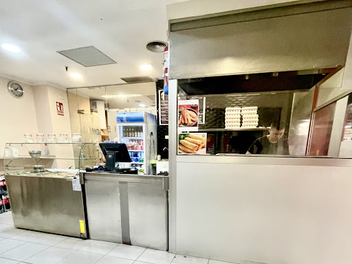 It is located inside the shopping area. The bar is small, with a bar and high stools to eat in. The owners are really friendly and welcoming. They do a great job, and even at their busiest hour the food will be ready in no time.