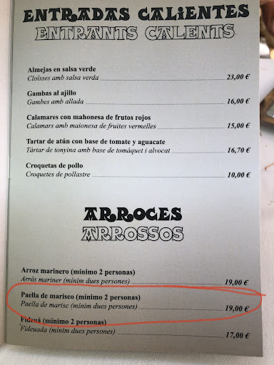 WORST EXPERIENCE EVER!!! My girl and I where thinking to get a small bite at this place. We saw on there menu, paella for minimum 2 persons €19. What a nice price, but no… it’s per person… the paella was ok, but small for €38. My girl and I felt robed. It’s not mentioned on their menu that it’s per person, and after you see the bill and try to talk to them (because you think there had been some mistake). They push and push you to pay by card… sorry… vacation killer… It’s not even for the money that I’m angry, just for the decencies. And what is their excuse? Everybody does it here. Wow… Beautiful town, beautiful culture but don’t go to this place. Or be warned for their...