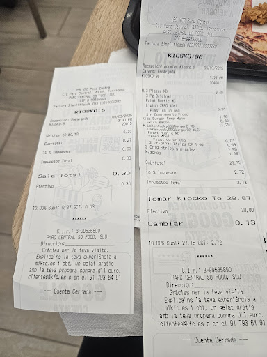 Read moreHe ido dos veces a este KFC, si bien la primera vez hubiera puesto 4 estrellas en la segunda solo puedo poner 2... Quiero destacar a los empleados que son más que amables, unas chicas muy atentas que cuidan muy bien la atención al cliente, en mi primera visita el coordinador era un ejemplo ayudando i creando un muy buen ambiente de trabajo, no paso lo mismo en mi segunda visita el coordinador dejaba mucho que desear con malas caras i, al ser preguntado por una de las chicas de la barra apenas le escucho, además de tener 0 amabilidad. Una lástima bajar la puntuación por este punto en concreto teniendo en cuenta que el resto del equipo...