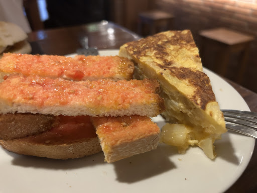 Read moreHorrible. La cambrera ens va recomanar un pintxo de truita "amb baldana i pebrot". La baldana i el pebrot, ni hi són ni se'ls espera, la truita més seca que la moixama, i cremada-negra per la base. Això sí, cada pintxo a 6€ i pico. I com que va trigar més d'un quart d'hora a portar els pintxos, quan em vaig aixecar a preguntar-li, amb tota la precaució i mà esquerra de que vaig ser capaç, si havia pres nota de la taula, em va contestar amb mala educació. Demanes una canya i et posen una micro-canya, això que a alguns llocs n'hi diuen zurito, suposo que per a que en demanis una altra al vint-i-set segons. Les taules de la terrassa al davant de papereres, contenidors de brossa, i cotxes passant contínuament, i sense ni un mal tovalló de bar cutre, tampoc ens el van portar amb els pintxos. En definitiva, tota una...