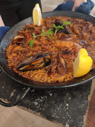 Read moreWent there for the paella. We eat a lot of paella. They have a couple other rice dishes but only seafood paella. Appetizer salad with eggplant and super fresh mozzarella was excellent. Paella was very well seasoned but a bit too salty. For two it's just right but not enough for extra servings. Chocolate cake and ice cream dessert was bland. Will return to try other dishes. Outdoor space in plaza very nice, indoor impossibly hot in July. Waiter attended all tables very well, a human bullet..very attentive. Then need more eggplant dishes...the eggplant in the salad was amazing....Not cheap but average for tourist...