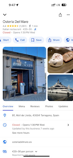 Read moreI came across this restaurant while on a walk, I was interested in dining here and looked up the reviews on google. I noticed google said the restaurant was closed. I had my friend ask a waitress who was working outside if they were indeed open. The waitress responded in an aggressive and condescending tone saying “no me ves?!” (you don’t see me?!). She then went on to say some other stuff but I couldn’t catch exactly what was said. After this completely unprofessional interaction that was done in front of other shocked customers of the restaurant, I went inside to ask to speak to the manager. It turns out she is the manager! Incredible. She could have entirely avoided the interaction if she did her job of ensuring correct basic information was available to potential customers. Included is a photo showing the restaurant hours showing as closed, when it was...