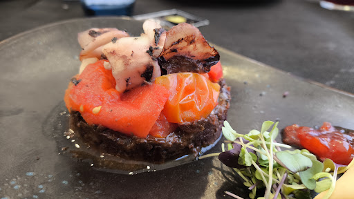 Read moreRestaurante ubicado frente a la playa. Dispone de terraza y comedor interior con A.A. tiene carta y menú arrocero de 23€. Lugar perfecto para un día de playa y comer en un restaurante sin desplazarte. Teóricamente, su fuerte son los arroces que los hacen para dos personas mínimo y máximo dos arroces distintos por mesa. Arroz negro, arroz marinero, fideuá, arroz meloso con chipirones y setas, arroz caldoso, arroz con bogavante. También hay tapas clásicas como mejillones, bravas (no recomendables) con mayonesa y mezclada con ketchup picante. El problema principal es que para el arroz utilizan uno redondo parecido al montsià y no es el arroz bomba y por eso, junto con un exceso de cocción y demasiado jugoso al servirlo en mesa, los dos arroces que nos sirvieron estaban pasados y curiosamente los dos eran iguales (marineros) pero eran distintos por color e ingredientes ya que uno tenía guisantes y tomate y el otro no. 🤔 El arroz meloso, sí estaba mejor ya que un poco de cocción más no le perjudica al resultado del plato. Los primeros del menú, sobre carta pintaban bien, timbal de morcilla con chipirones y steak tartar de salmón. El timbal era una simple morcilla despellejada con 2/3 trocitos de chipirones sobre la morcilla y un poquito de mermelada de tomate y unos trocitos de tomate (ver foto) y el steak de salmón insípido y totalmente. Las patatas bravas, con una salsa simplona y las patas estaban estilo risoladas (doble cocción) pero creo que estaban fritas y refritas quedando como se dicen popularmente "zapatúas". La profesionalidad de todo el servicio, excelente. Rápidos, te aconsejan y un punto de simpatía humor muy agradable. Quiero pensar que ir un día dónde estaban a tope y con dos turnos, provoca que los platos salgan con menos cariño ya que las valoraciones del restaurante son bastantes buenas, pero....esta es l mía lo más...