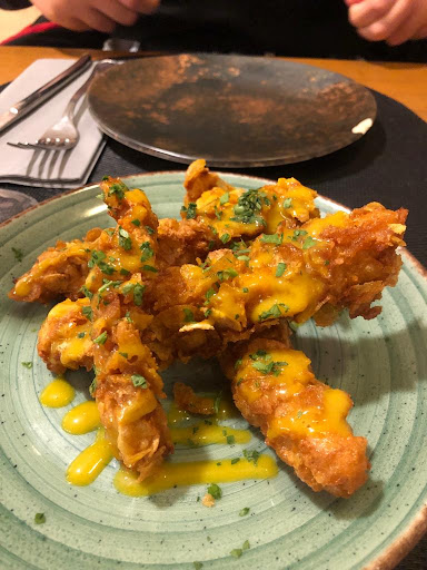 Fui con una amiga para cenar unas tapas y la verdad que relación calidad-precio totalmente correcta. Hicimos una botella de vino tinto, 5 tapas para compartir y un postre y quedamos muy bien. Solo hubo una tapa que no me gustó nada y es que el supuesto secreto ibérico a la brasa era pura grasa. A parte de no llevar nada de lo que ponía en la carta. La camarera me preguntó si todo bien y le dije que esa no me había gustado (ni me comí la mitad) a lo que me contestó con un simple “bueno..” Después de preguntarnos café y decirle que no queríamos, nos trajeron la cuenta directamente sin pedirla. Eran las 23:00 de la noche. Y preguntarles si podíamos acabarnos las dos copas de vino fuera nos contestó con un sí dudoso y lo finalizó con un “cuidado con las copas”, bastante seco y de mala gana. La comida está bien, y el servicio era correcto. Pero no puedo evitar irme con una sensación amarga y sintiéndome como si me hubiesen echado del local de malas formas y con desprecio. Las dos chicas horribles, muy maleducadas. El chico correcto, muy amable y con una sonrisa en la cara...