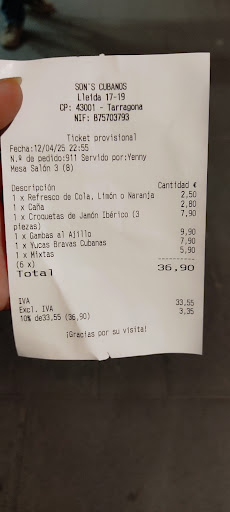 Read moreMi experiencia en "Son’s cubanos " fue, lamentablemente, todo menos sabrosa. Desde el principio, el ambiente prometía algo auténtico y acogedor, pero la realidad fue muy diferente. Para empezar, la comida llegó fría. No un poco tibia, sino fría como si la hubieran preparado horas antes y la hubieran dejado olvidada en la cocina. Pedí un plato típico cubano, esperando sabores intensos y calientes, pero lo que recibí fue un decepcionante montón de comida que parecía haber sido sacada directamente de la nevera.
