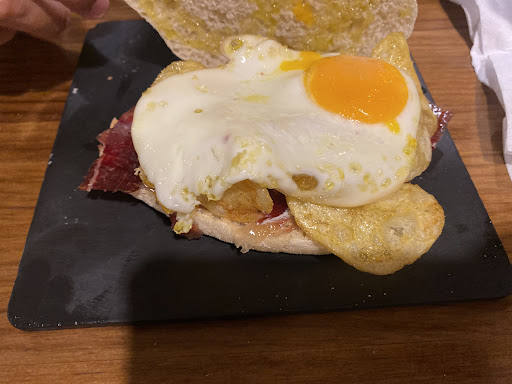 Read morePor partes: el camarero, muy bien, amable y buen servicio. La comida ya no tanto. La tostada y el mollete, bastante buenos. Pero la “estrella” de la comanda era una tabla de ibérico de bellota (22 €), y no es aceptable que más de la mitad de los cortes del jamón sean o bien secos o bien trozos con nervios que has de andar sacando de la boca. El lomo ibérico, excelente pero sólo era un 20% de la tabla. Lo dicho, cualquiera que haya cortado un jamón sabe qué cortes pueden ir a una tabla premium que se cobra a 22 € y qué cortes hay que destinar...
