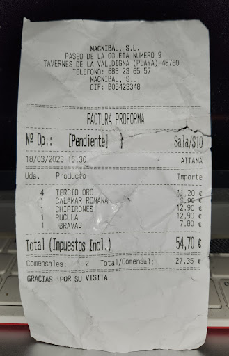 Read moreI have had too many bad experiences in this place. Lots of people love it and rave about the food. They are well known for their Paella dishes which you can book and reserve ahead. The food is not really the problem because in general the food is quite good, not fabulous but ok.... My experience has always been the over charging and bad service. 9€ for bread... Dishes which don't appear and they charge you for them anyway. The added dishes or drinks you never ordered on your bill. The head waiter is really rude and obnoxious. And to argue with staff who do not want to listen and argue with you in front of everyone like you were a thief is really off putting. I just avoid it like the plague now...my advice double check your bill...