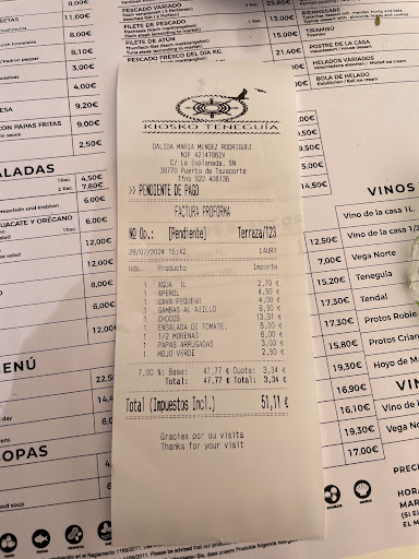 The best thing about this restaurant is its location and that’s what you pay for: the terrace has excellent views over the beach to the sea. Inside is spacious and nicely decorated, and they have a cool turtle pond en route to the bathrooms. The place is clean. It took our lunch over half an hour to arrive, but to be fair, they were very busy. The food was average: Fresh, especially the patatas arugadas, and the salad. The chopitos were ok, the meatballs a bit bland, but the fries were made of real potatoes. The service was adequate. The food was well presented. The main issue for us was the price-quantity ratio: €14.40 for a very small plate of chopitos and a thin eight of a lemon, €11.50 for 5 meatballs and a handful of fries, €7 for a salad that contained half a tomato and less than half an avocado…. Nothing terrible,...