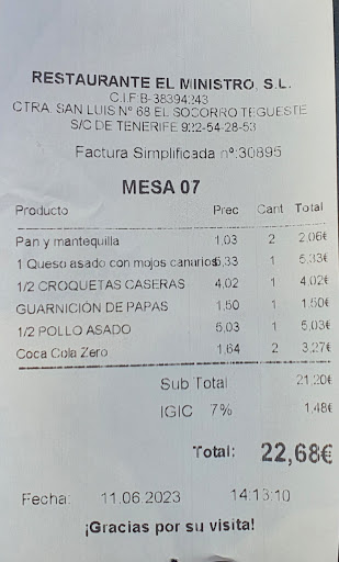 Read moreHoy visite este restaurante que tiene facilidad de aparcamiento. Dos salones comedor con robustas y amplias mesas, buena luz. Buena e inmediata atencion de camareros. Pedimos ensalada, muy completa y abundante; queso asado con mojos, muy bueno, y, un pollo a la brasa troceado con papas fritas de buenas papas, el pollo tardo un poco mas de la cuenta, todo nos parecio muy bueno. Los cafes tambien estaban bien conseguidos. Recomendable. Volveremos a probar otras cosas. Por cierto la carta al tratar de darle un colorido modernista, obviaron el contraste necesario entre la letra y su fondo, dificil leerla con claridad y celeridad. Les propongo que la modifiqueis...