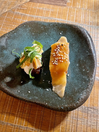 My least favourites: Lanzarote octopus with Yolk sweet potato, Mojo Palmero and Mimos Tinajo tomato. The octopus brings your expectations up to the top and here its flavour was not enhanced, almost imperceptible. A bit unbalanced. My partner was also not lucky as her octopus was a bit chewy, very unfortunate. Disappointed.