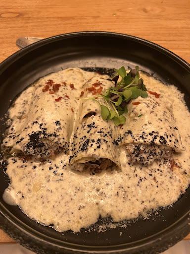 The menu offers authentic Italian dishes with their own personality, a clear sign of a passionate and united kitchen team. Everything is prepared with fresh, high-quality ingredients. I shared a simply outstanding seafood appetizer, and the ravioli and squid ink spaghetti were absolutely delicious! The attention to detail and the genuine flavors reminded me why Italian cuisine is so special.