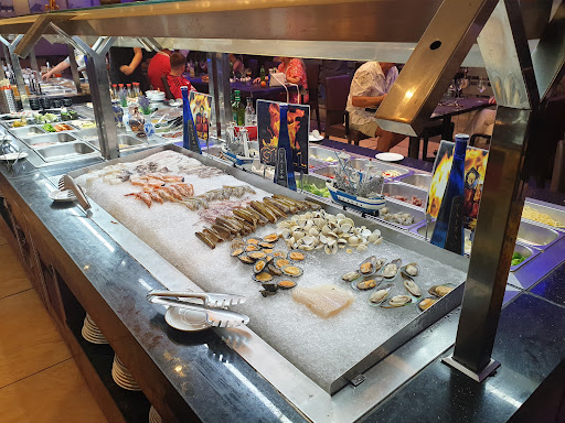 5th day on holiday and visited for dinner after being in sea watching Sunset & Dolphin tour. WOK, the taste was simply mouth-watering! The selection, the layout, each station perfectly layed out without having to wait in line to reach a specific item. The seafood and fresh non-veg section was amazing and cooked on the spot for that fresh taste! Layered on ice was Mussels, ribs, oyster, lamb chops, salmon, squids, clam, various fishes/chickens, different sized prawns and loads more that I can go on! Create your own stir fry station with loads of fresh vegs too. All of which you choose, plate, tag with your table number keyring and leave at chef. Then once cooked the staff bring it to your table. Cool idea so in the meantime you can enjoy the ready-made food. Thats just the 3 stations so far but the rest, sushi, noodles, rice, curries, fried food section, like defo spoilt for choices in this buffet and A MUST DINE IN for that original Asian taste! Just don't stand there wondering where to start coz you might just hold up the hungry traffic of people! Also not to forget the dessert station! Chocolate fountain, sweets, icecream fridge filled with 7 different flavours, fresh fruits, yogurts, variety of cakes, cream and jelly... Sweet rush for sure!! The staff were all well mannered, polite, smiling, conversing, well dressed and helpful! Constantly moving around serving and cleaning all at the same time. The atmosphere was calm with dim lighting but busy with hungry customers as all you can hear is their cutlery beating the plates. I visited on Saturday and was charged 16.95€ per adult (10+) and drinks cost varied. This place would have been a family favourite had I not been a UK citizen! HIGHLY RECOMMENDED AND...