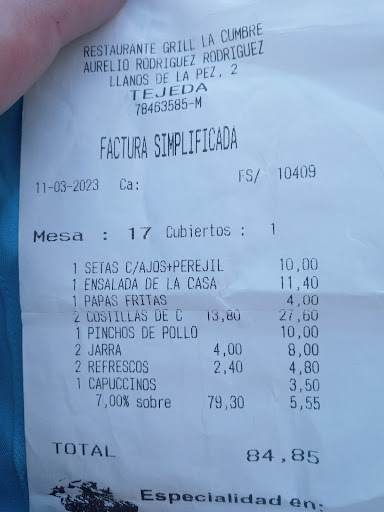 Read moreThe food is very bad quality, we ordered meat which was hard to cut (not even think about eat it), the "Ensalada de casa" actually is not a salad, but mix of stinky salmon with fruits like kiwi, pineapple, avocado, some crunch onion, bitter zucchini (probably remaining from a day before) one egg, and... no salad, everything was covered by unfresh salmon odour (unfortunately in the menu there are no listed ingredients so you can't know what you order), totally disgusting. The vegetables served with chicken were frozen boiled in water with a fish odour, uneatable. No spices, no "idea" of a kitchen, all was covered by barbeque sauce. I'm sure the cook doesn't even taste the food before serving otherwise he would not give this stuff to anyone. Of course we had to pay for what we didn't want to eat and more there is a 7% add on the bill for I don't know what service and we weren't be informed about this extra obbligatori tip. We paid more than 80 euro and still hungry and disgusted. Very sorry because the restaurant seems fine and waiters are gentle. However it's better not to go there, if you don't want to...