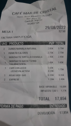 Read moreServicio muy bueno excelente trato de las camarera,mi queja va al dueño de este local,he desayunado con mi esposa y la cuenta fue se 17,85,suelo desayunar en varios sitios de telde y este a sido el sitio más caro con un desayuno normalito,me parece abusivo cobrar por una pulguita de tortilla española y por una pulguita de calabacin con miel que lo tiene puesto como montadito 2,45 cada una lo más q se puede cobrar por una pulga en telde son 2.00 euros,no están en teiana,es q ni en triana,lo otro pido un café con leche sin lactosa y me cobran 1,50 por el café con leche más 0.25 por la leche sin lactosa,es ridículo,es mejor q cobre 1.75 por el café con leche y queda mejor,un vaso de agua con gas kristal 0.35 el vaso ni...