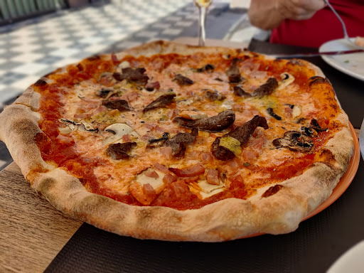 Pedí pizza boloñesa y mi esposa pidió espaguetis a la boloñesa, y mi pizza fue posiblemente la mejor que he probado en mi vida. De gran calidad y muy sabrosa, y además recién hecha.