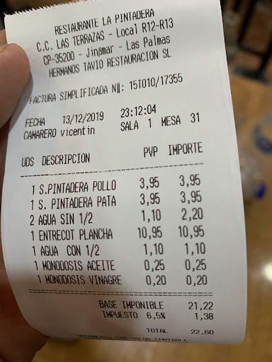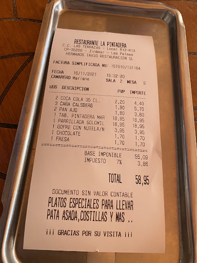 Read moreFatal, no volveremos, mal servicio y mala comida. Si quieren pasar mala experiencia ese es tu lugar. No te dejan sentante en las mesas grandes porque son para 6 pero ellos se sientan. Al pedir el menu no me dejaba quitar frankfurt todo lleva salchicha un camarero me dijo que si podia y el otro no, vamos que no se entienden( que teniamos que comer obligado frankfurt un asco), pues pedi carne de cerdo frita y encima que tardo me trae estofado y frio les dije que pedi cerdo frito y ellos discutiendome que la carne la hacen asi guisada que no se freia cerdo y yo pero si es guisado no puedes vender en el menu frito y seguia discutiendo y eso que el menu tiene fotos de cerdo frito..fatal me pusieron estofado que sobraria de algun plato y despues de debatirme y no disculparse al llevarse el plato de mala manera porque le pedi qe me dieran un gordon blue, se ve que el cocinero se molesto mientras el otro cocinero se comia mi plato, aparte el camarero entraba y salia a cada rato comiendo a saber si es de los platos de los clientes que se estan montando en la cocina. Me traen el plato y ni siquiera un espero que le guste o esta todo a su gusto nadaaa vamos malas caras, termine comiendo sola porque tardaron en sacar mi plato y se lo habian recogido a los demas, pedimos la cuenta y se llevaron todo el pan de la mesa sin tocar qe me los cobró, le dije que el pan me lo hiba a llevar( para cenar que pa eso lo pago) pues ala se molesta otra vez y coje el pan y me lo da en la mano que ascooo ni en la cesta ni en servilletas ni nada..el otro camarero le tubo que decir no te pases ponle aunq sea platina no se lo des asi, pero nada me trajo uma simple bolsa, pues nada al.cobrarme me sobrarian unos 0, 80 centimos algo asi y se para al lado nuestro como 6 minutos con la calculadora esperando que le dijeramos quedatelo superrr fuerte obligamdote a dejarles propina despues del mal servicio mal ambiente mala experiencia te tiran los platos como si molestaras ni una sonrisa ni gracias nada de nadaaaa en mi vidaa hemos tenido un trato asi en ningun bar ni restaurante de la isla. Como para dejarle propina no te jode!!! Fuimos con entusiamos y ganas de comer en un lugar nuevo y nos encontramos con esoo, no volveremos jamas ni yo ni mis amigas ni mis familiares...un ascooo!!! Ahhhh y se te cobra la salsa a parte jajajaj un gordon blue o cualquier carme qe pidas te cobran la salsa aparte jajaja. Esto fue en la pintadera de las terrazas una...