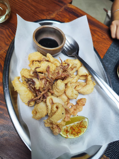 Tenía muchas ganas de probar este nuevo restaurante en plena plaza de San Juan y más cuando leí que el chef trabajó en el Qué leche, un restaurante que me gusta mucho. No se si fui con expectativas muy altas pero no me gustó la experiencia. En primer lugar, llegué a las 15:00, por tlf me dijeron que a las 15:30 cerraban la cocina así que tenía que pedir antes. Me trajeron la bebida pero a las 15:25 tuve que llamar a la camarera porque seguían sin tomarnos la comanda. 5 minutos después por fin lo hicieron. Pregunté si estaban muy saturados por favor me lo dijesen para volver otro día, pero me dijo que lo sacarían pronto, que lo primero serían las croquetas y la ensalada de aguacate. Las croquetas llegaron en último lugar, pero bueno con el hambre que tenía no me importó. Me decepcionó que los chipirones, a pesar de estar super tiernos todo sea dicho, eran bastante escasos, vienen sin ningún tipo de guarnición en una bandejita. La ensalada de aguacate con pico de gallo, sin más. Un tomate picado con aceite y medio aguacate cortado. Como se ve en las fotos raciones pequeñas de estos platos. Igualmente tampoco nos gustaron las croquetas, pues a pesar de venir una buena cantidad, por dentro son prácticamente líquidas, costaba encontrar los trocitos de ibérico. El último plato que describo fue, para nosotros, el mejor. Chips de batata con huevo, gambas y salsa de trufa. De todos, el que me parece que tiene algo de elaboración y originalidad. Muy sabroso, y si volviera pediría este plato de nuevo. Estos 4 platos, más pan y 3 bebidas fueron 63€. Personalmente, salí con algo de hambre pero visto lo que ocurrió con la comida preferí quedarme sin postre. El local es estupendo eso sí. Para mi gusto, está muy bien para tomarte un vino y una tapa de ibérico, pero como experiencia gastronómica podrían mejorar más, sobre todo teniendo una buena competencia...
