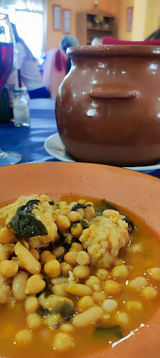 Paramos en este restaurante a la vuelta de vacaciones de Semana Santa. En pleno domingo, restaurante lleno (y no de viajeros, gente del pueblo) y menú de fin de semana por 15€. Nos dicen que tardarán en atendernos porque no tenemos reserva. Llegamos a las 15.30 y a las 16.00 ya estábamos con el postre. No es un lugar de comida fina pero todo estaba bien cocinado y la calidad era más que aceptable para el precio del menú. El potaje del primer plato servido en cazuela de barro, una ración enorme y buenísimo. Algo más flojos los postres. El personal muy atento y amable pese a las...