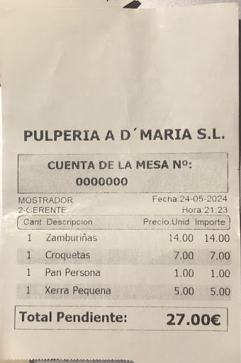 Habíamos pedido 4 zamburriñas, los de la mesa de al lado 6, llegó un camarero de apoyo, brasileño? rumano? no lo se, y le puso nuestras 4 a ellos, es decir, que encima que ibamos tarde, mal.