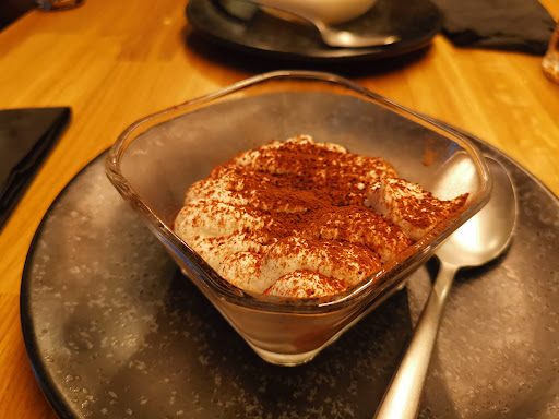 Fue un viernes y pasando por delante del local sin haber comido aún a las 15:15h… pizarra a pie de calle anunciando menú por 16,90€… y un surtido de primeros y segundos que llamaban la atención. Entramos a sabiendas de no tener reserva y llegados a hora algo tardía… pero muy atentamente la persona que nos atendió muy amablemente nos dijo que no había problema.. con la condición de no alargásemos más allá de las 16:30 a lo cual obviamente accedimos por ser razonable dado la hora que era. Pedimos, si no me equivoco ( pues hago la reseña un mes después de haber ido… en el primer momento de calma postnavidad ) de primero unas bravas con sobrasada y miel, y raviolis rellenos de marisco; de segundo solomillos de atún y arroz negro de tinta de pulpo… postre Apple pie y una crepe con zumo de naranja a cual más apetitoso… todo ello acompañado de vino blanco y agua. No puedo decir más que halagos de lo bueno y apetitoso que estaba TODO.