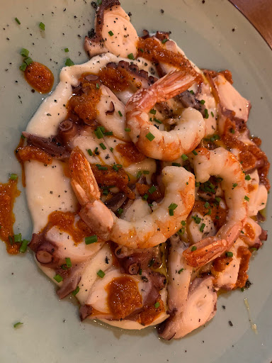 Hola a todo el mundo, me gustaría compartir mi experiencia con todos vosotros/as. El servicio, a mi parecer, no tengo ninguna queja, la bebida tampoco, muy decente para mi (diferentes cervzas), el único inconveniente y de forma resumida, la calidad y el precio son muy diferentes, es decir, si los precios del producto solicitado y probado, hubira sido más económico, seguramnte no expondría mi experincia, si la calidad hubiera sido superior, tampoco, pero al ser una calidad, desde mi punto de vista, un poco justa, el precio de lo ofrecido no lo acabo de entender. Tanto el pulpo, como el parmentier concretamente bastante insípidos, las gambas decentes, pero nada extraordinarias tampoco. El tamaño y el precio por este motivo y para mi entendimiento, muy lejos de mi lógica. El Tataki de atun, para mi gusto, aun peor, el atun muy lejos del gusto y placer de sabor que esperaba, incluso alguna parte dura, las verduras que lo acompañaron, también muy lejos de mi ilusión y deseo, quizás incluso costumbre, pero una verdura tan insípida, no me resulta placentera, si además el precio és el que és, insisto, sigo sin entender la lógica. Quizás al haber comido en otras ocasiones y lejos de aquí, por ejemplo atun almadraba, no niego ser muy exigente, pero insisto, para mi un atun almadraba tiene un precio, gusto y placer indiscutibles y si no es así, creo que debería ser muy diferente. Si me gustaría decir que para mi lo mejor, fue el pan con tomate, buen gusto crijiente y sabor. Es solo mi experiencia y mi aportación, nada más y sin ninguna...