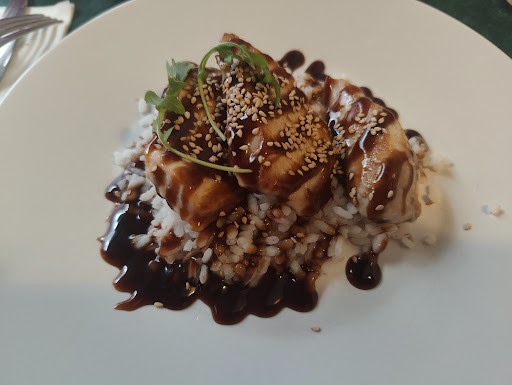 El arroz en su punto, bien presentado y sobre todo sabroso, muy sabroso ... muy agradable, me hubiese comido otro. La buti .... claro, materia prima, ¿no? ... pues sí, buena materia prima y con el acompañamiento bordado ... también hubiese repetido. Helado "griego" ... también muy agradable.