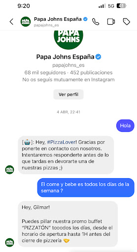 Cuando llega el pedido resulta que una de las pizzas tenía bacon (cosa que cuando hemos echo el pedido se le dejó claro que no llevara este ingrediente), volvemos a llamar disgustados por la pésima atención ya que en el ticket quedaba claro que era así y nos la han enviado mal ellos y encima el chico que era el mismo al cual nos quejamos de que aún no habían llevado después de una hora súper irrespetuoso y ha llegado a amenazar de que o para de quejarse o no va a resolver el problema y no me enviaba otra de vuelta sino hablando de una manera muy vacilante e irrespetuosa...una vergüenza vaya a ese tipo no se ni como lo tienen trabajando, porque para eso hay gente con muchas más ganas y con respeto que recuerdo que el error ha venido de ellos por su pésimo trabajo y encima 0 empatia..no hay que tratar así a los clientes y menos después de un error así. Horrible experiencia, hay que tener calidad no sólo en comida sino en trabajadores que eso es...