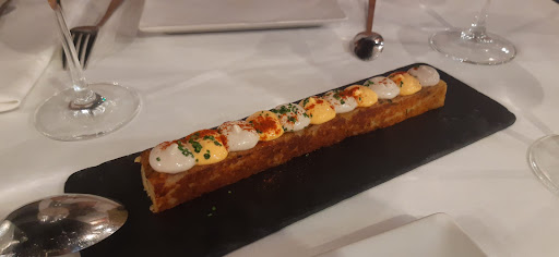 Mejillones (7 sobre 10) Crujiente de cochinillo (8 sobre 10) Entrecotte (8 sobre 10) Alitas (6 sobre 10) Tiramisú (9 sobre 10).